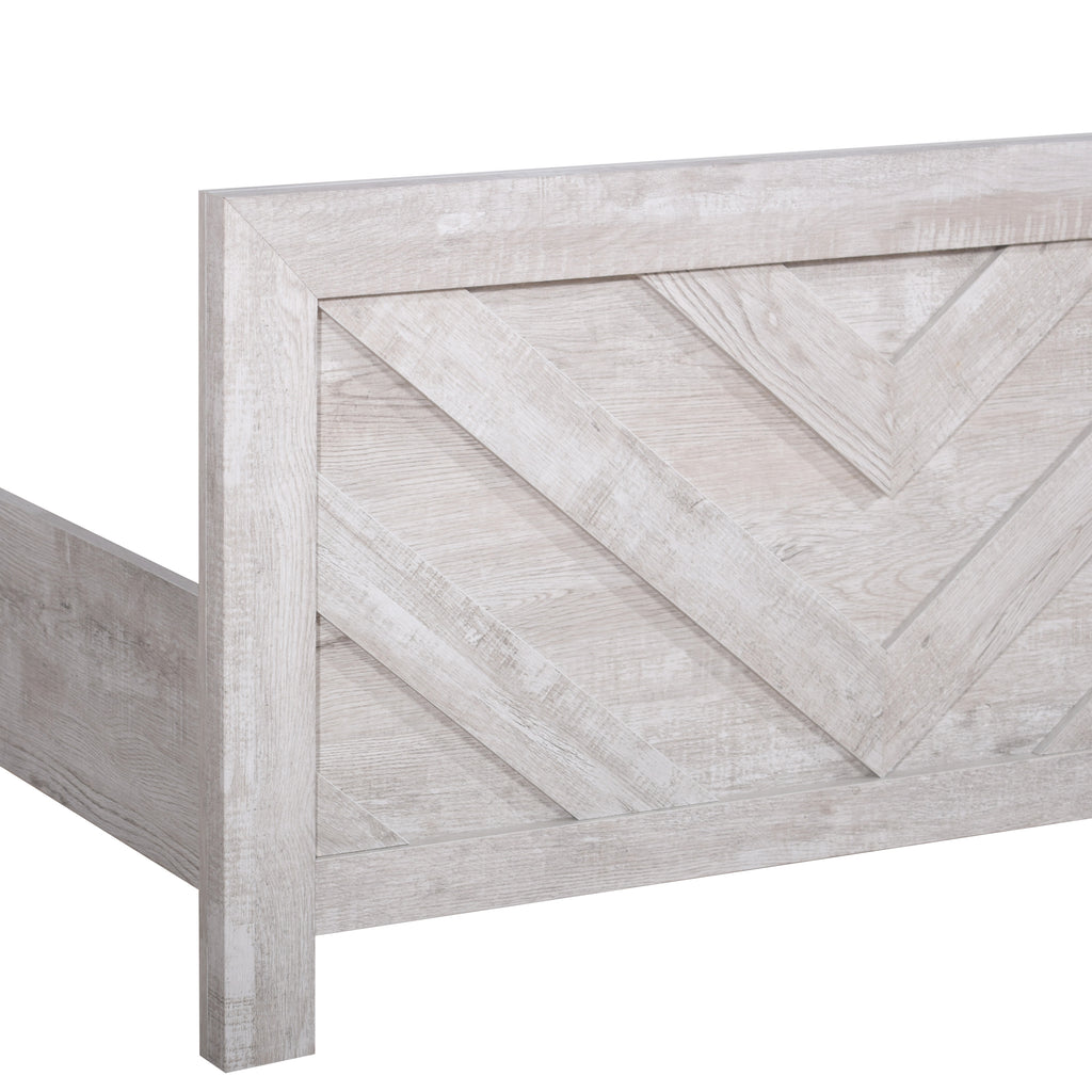 Meet the Biscayne Bed, meticulously crafted with durable manufactured wood and adorned with an Eco-Friendly decorative laminate for enduring strength and stability. Its Driftwood finish exudes a light, airy ambiance, perfect for unwinding after a hectic day. The tall headboard and matching footboard feature distinctive chevron pattern wood trim, adding an eye-catching element to your bedroom. With its versatile transitional design, this bed effortlessly complements a variety of styles, from coastal to contemporary, farmhouse to urban rustic. Experience both comfort and style with this remarkable addition to your bedroom decor. For use with the matching Biscayne Side Rails.