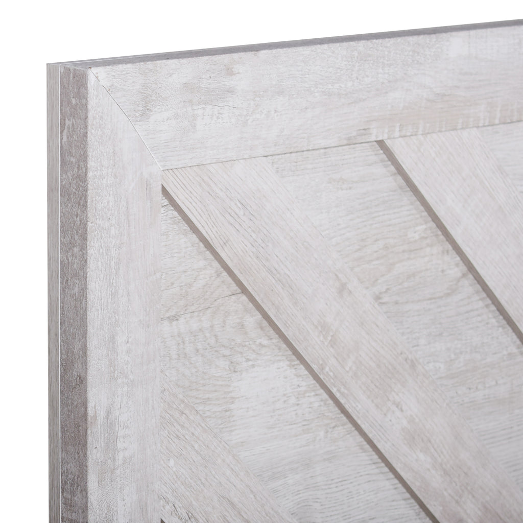 Meet the Biscayne Bed, meticulously crafted with durable manufactured wood and adorned with an Eco-Friendly decorative laminate for enduring strength and stability. Its Driftwood finish exudes a light, airy ambiance, perfect for unwinding after a hectic day. The tall headboard and matching footboard feature distinctive chevron pattern wood trim, adding an eye-catching element to your bedroom. With its versatile transitional design, this bed effortlessly complements a variety of styles, from coastal to contemporary, farmhouse to urban rustic. Experience both comfort and style with this remarkable addition to your bedroom decor. For use with the matching Biscayne Side Rails.