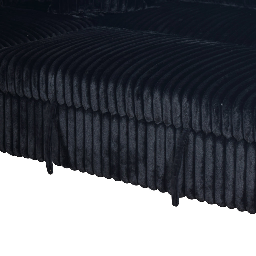 The Bliss Sectional Sleeper with Storage Chaise in Midnight brings comfort and practicality together in a cozy, inviting design that’s perfect for any home. Built with sturdy hardwood and plywood frames, it offers a reliable foundation that lasts. The plush, wide-ribbed corduroy fabric feels irresistibly soft, wrapping you in warmth as you unwind. With plenty of seating for family gatherings or lazy days, this spacious sectional also comes with matching pillows for an added touch of comfort. The pull-out bed and chaise with hidden storage for blankets and pillows make it ideal for welcoming overnight guests or enjoying a quiet afternoon nap. Thoughtfully designed with built-in USB chargers, your devices stay powered without disrupting your relaxation. The Bliss Sectional blends modern functionality with a welcoming, homey vibe, making it a perfect addition to any living space.