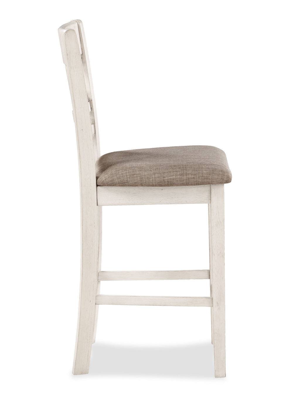 - Comfortable Counter Chairs Built to Last: 100% polyester light brown upholstered cushions are supported by solid wood legs reinforced with solid wood base stretchers that double as footrests.