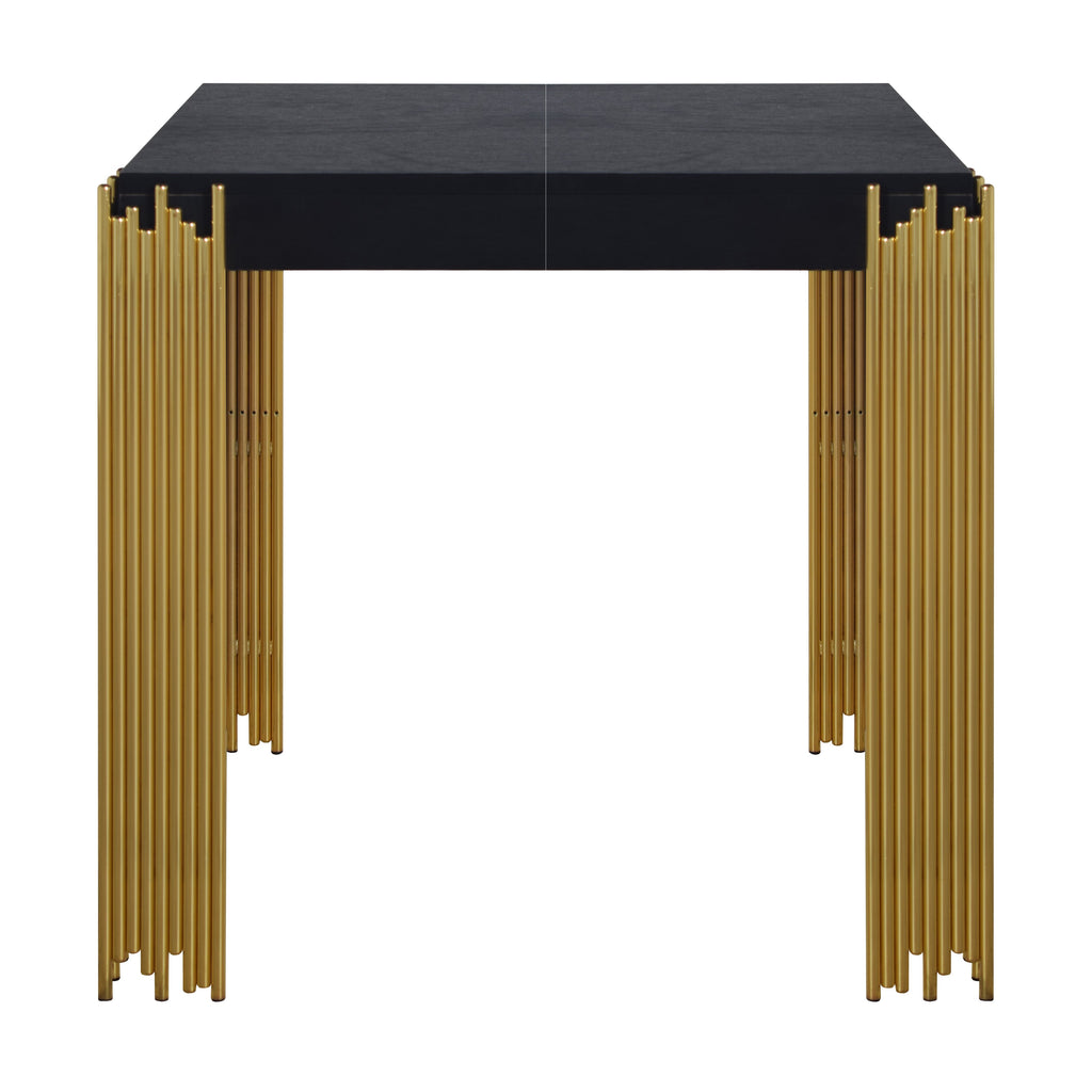 The Empire End Table is a sleek and durable addition to your living space. Crafted with eco-friendly manufactured woods and adorned with a sophisticated black finish, this table exudes contemporary charm while ensuring long-lasting strength and durability. Its modern metro style, characterized by gleaming gold tiered legs, evokes the enchanting ambiance of a city skyline shimmering under the stars. Elevate your space with the Empire End Table, where lasting construction meets stylish design.