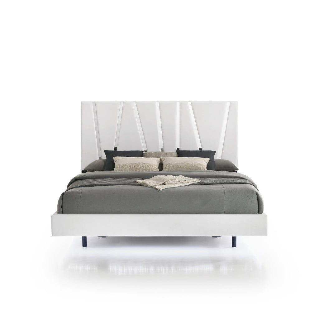 - Sleek, Modern Design: The sophisticated look is achieved by the combination of the majestic headboard, glossy white finish and modern mylar accents.