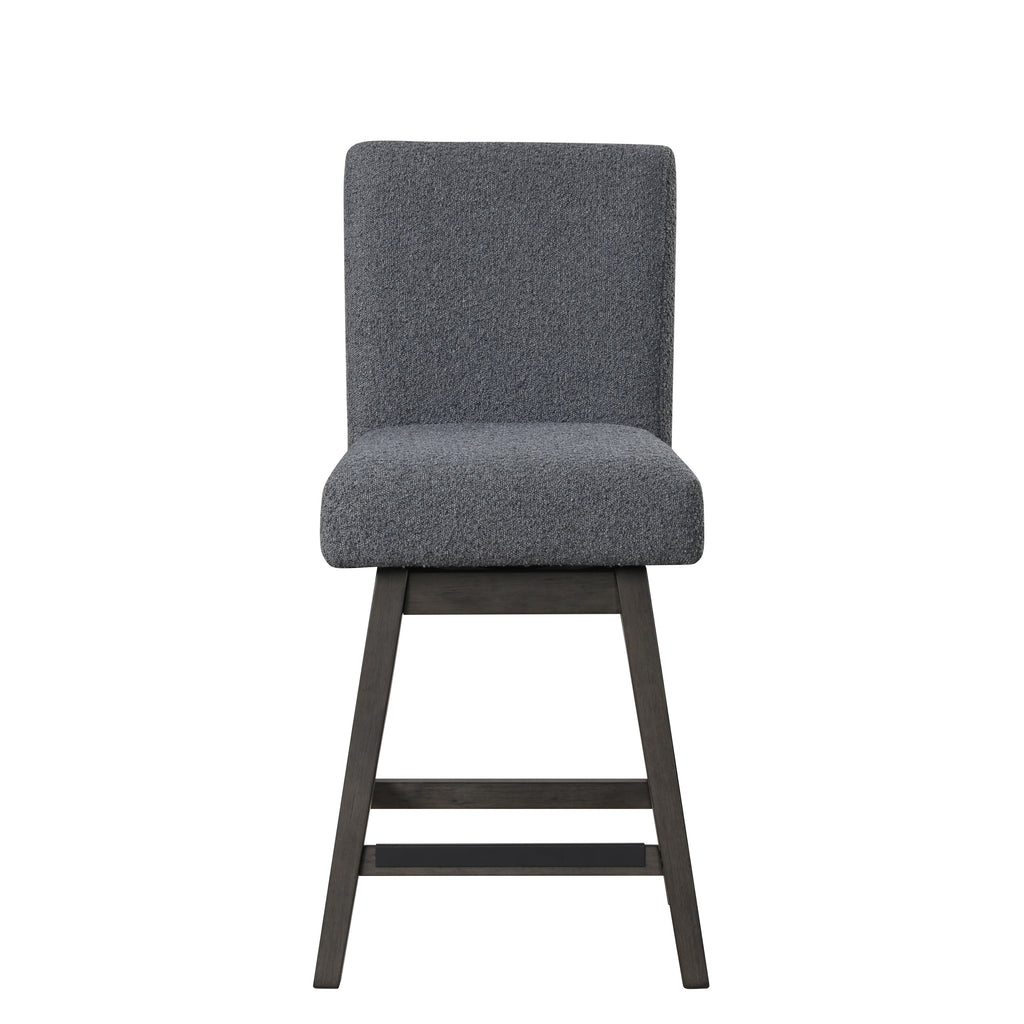 The High Line Counter Height Swivel Chairs in Gray offer a blend of durability, comfort, and functionality. Each set includes two counter swivel stools, expertly crafted from solid Acacia and Rubberwood, complemented by high-quality manufactured woods and Birch veneers to ensure long-lasting durability and stability. These chairs are upholstered in luxurious bouclé fabric, known for its exceptional durability, making them ideal for frequent use. The unique looped texture provides a plush, comfortable seating experience, adding both elegance and longevity to your dining area. The side-to-side 180° swivel feature allows for easy conversation, making these chairs perfect for dining rooms, kitchen islands, bars, or as accent chairs. They add both functionality and aesthetic appeal to any space. The High Line Counter Height Swivel Chairs are a versatile and stylish addition to any home, combining practical features with a touch of sophistication.