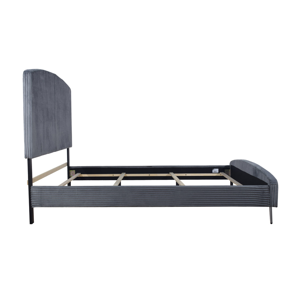The Kailani Upholstered Panel Bed is a harmonious blend of modern design and luxurious comfort, making it a standout piece for any bedroom. This bed, which includes a headboard, footboard, side rails, and a bed slat kit, is crafted from a durable mix of solid rubberwood, engineered wood, and eco-friendly decorative laminate. This thoughtful construction not only ensures longevity but also offers resistance to scratches, moisture, and stains, keeping your bed looking pristine with minimal upkeep. The clean lines, sleek silhouette, and chic ribbed texture of the bed bring a touch of modern minimalist elegance to your space. Wrapped in plush 100% Polyester Velvet, the inviting gray upholstery adds warmth and sophistication, while the generously sized headboard provides a perfect spot to relax. The Kailani Bed is not just a piece of furniture—it's a refined statement of style and comfort, designed to create a serene and sophisticated bedroom retreat.