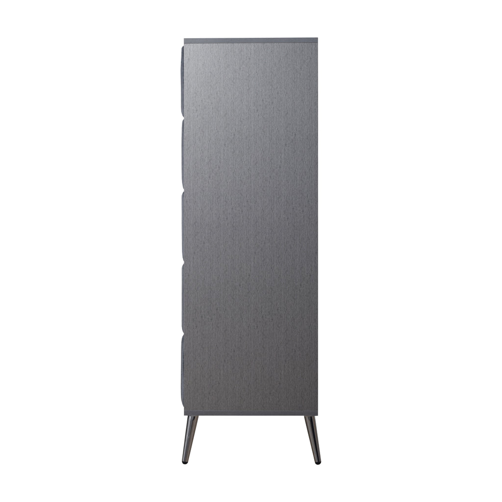 - Modern Minimalist Design: Featuring clean lines, a sleek silhouette, and a chic ribbed texture, this 5 drawer Chest embodies modern minimalist elegance. The slim, metallic handles and tapered legs not only enhance the contemporary aesthetic but also provide durability and ease of use, adding a sophisticated yet functional touch to any bedroom decor.