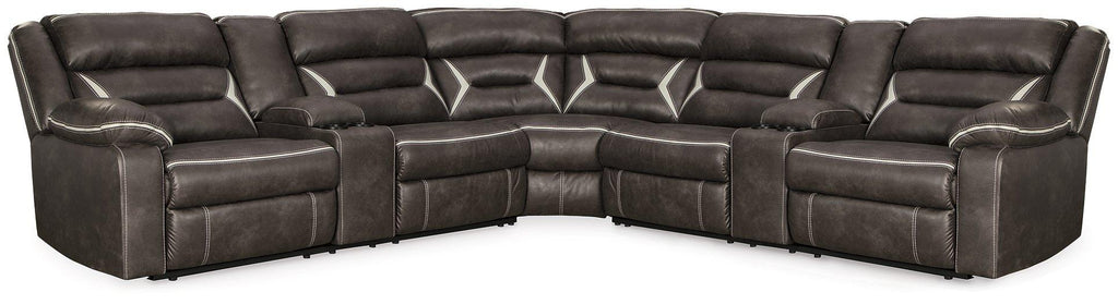 You could play it safe. Or you could choose to stand out in the crowd with this brilliantly styled sectional with power. Ultra cool, ultra contemporary and ultra comfortable, this fashion-forward sectional sports a fabulous faux leather enhanced with contrasting stitching that’s right on point. Rest assured, sumptuous pillow top armrests and sleek channel cushioning feel every bit as good as they look. Enlightened elements include a power control with USB plug-in and blue LED lighting (by the cup holders) to create a home theater experience worthy of A-listers.