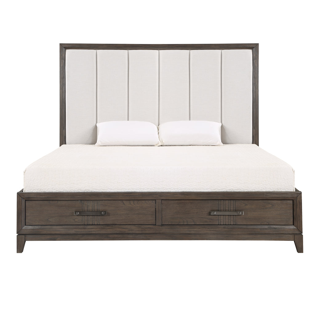 The Landon Storage Platform Bed combines durability, style, and practicality to enhance any modern bedroom. Expertly crafted from solid Pine, high-quality engineered woods, and genuine Mindi wood veneers, this bed is built to last while preserving the natural beauty of wood with its multi-step walnut finish and subtle gray undertones. The plush, channeled-back headboard, upholstered in natural fabric, offers cozy relaxation and a refined contrast to the bed’s warm tones. For added convenience, the storage footboard includes two spacious drawers, ideal for stowing away linens, clothing, or other essentials. Designed with modern living in mind, the platform bed features 13 sturdy support slats that provide reliable mattress support without the need for a box spring, ensuring a sleek, low-profile appearance. The Landon Storage Bed is a perfect blend of style and function, making it an excellent addition to any bedroom.