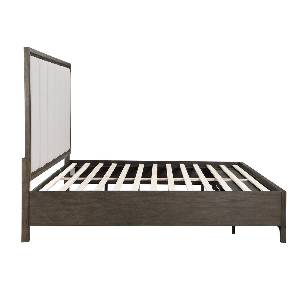 - Cozy Relaxation: The plush padded headboard features a striking channeled back upholstered in natural fabric, offering a subtle yet elegant contrast to the set's warm finish.