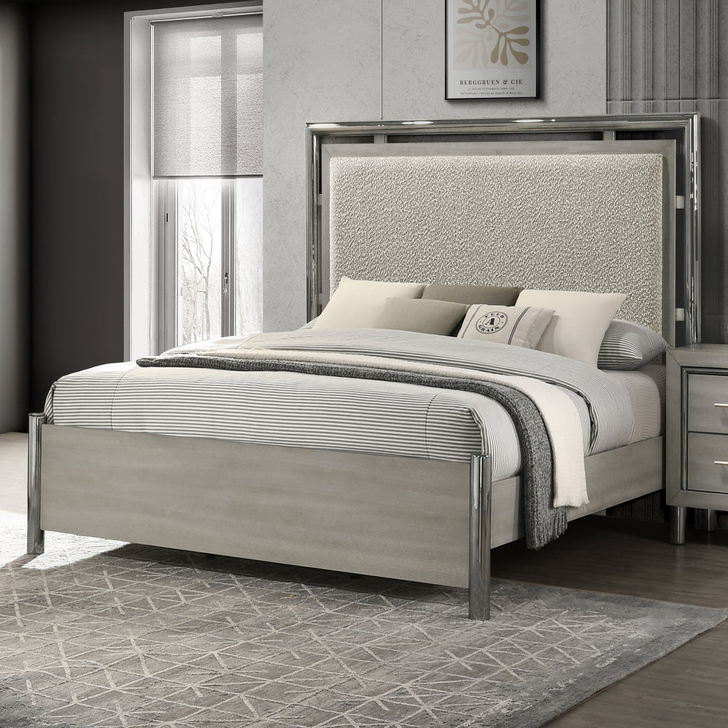 The Lennox Upholstered Bed in Gray is the ultimate combination of modern elegance and comfort for your bedroom. Crafted with premium engineered woods and eco-friendly gray ash laminate, it boasts a sleek, contemporary design that is both stylish and durable. Lustrous metallic trim accents elevate the light gray finish, adding a refined touch to its sophisticated aesthetic. The padded headboard provides a cozy and supportive spot, perfect for sitting up with a book or relaxing in comfort. With its thoughtful design and durable construction, the Lennox Bed is a striking centerpiece that enhances both style and functionality in your space.