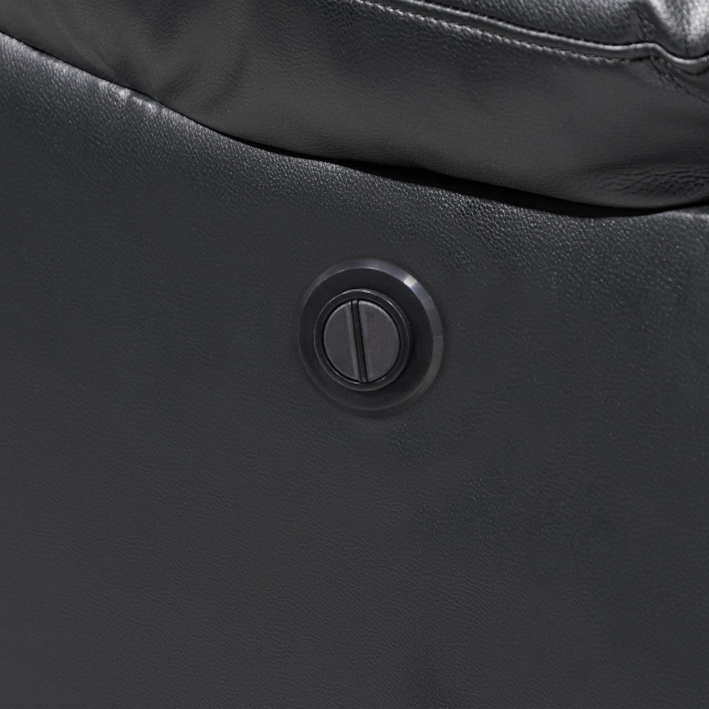Experience the ultimate in comfort with the Nikko Glider Recliner with Power Footrest and Hidden Cup Holders . Crafted with long-lasting construction, the frames are made from hardwoods and plywood, ensuring a stable and durable seating experience. Enjoy luxurious comfort with resilient foam cushions and pocket coil support, providing a cozy place to lounge. The two-tone black and gray fabric, made from 80% polyester and 20% PU, offers the soft touch and look of leather with added breathability. Distinctive details such as nailhead trim, diamond stitch pattern seats, double wrapped headrests, and expert tailoring make this recliner a standout piece in any home. The glider recliner includes hidden cupholders in discreet pullout compartments under the armrests and a USB charging port to keep your devices powered up. With soothing, gentle gliding action, plush pillowed arm and headrests, reclining backs, and comfortable footrests, this recliner provides the perfect place to unwind. Find your perfect recline position with the touch of a power button. Enjoy unparalleled comfort and style in your home with the Nikko Recliner.