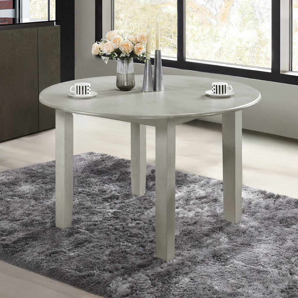 Discover the Pascal Wood Round Dining Table in Driftwood Gray, a refined and versatile addition to any dining area. Crafted from a durable combination of solid Rubberwood and manufactured woods, this table promises long-lasting stability and strength. Its clean, sophisticated finish is achieved through a meticulous multi-step process that includes rub-throughs and glazing, enhancing the natural beauty of the wood. This 47-inch round dining table comfortably seats four, making it an ideal gathering spot for dinners and game nights. The design features subtly rounded edges and tapered legs, creating an upscale look that seamlessly integrates into transitional, farmhouse, and contemporary decor styles. Combining quality craftsmanship with timeless design, the Pascal dining table elevates your dining space with elegance and functionality.