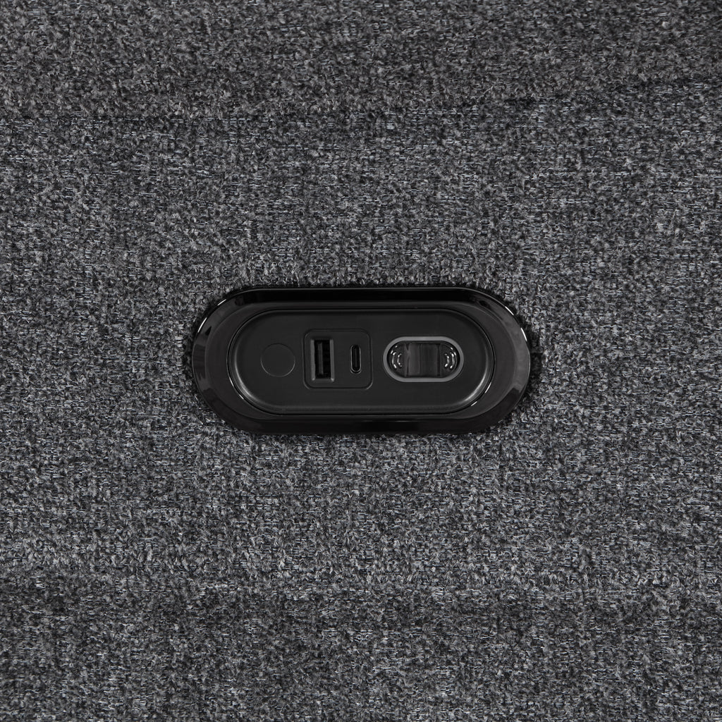 The Redondo Power Glider Recliner offers soothing heat and massage therapy, an adjustable footrest, and smooth power reclining at the touch of a button. Wrapped in soft, easy-care dark gray polyester fabric, it features plush foam cushions and resilient springs for lasting support. Built on a durable hardwood and plywood frame, this recliner blends indulgent comfort, thoughtful design, and effortless functionality.