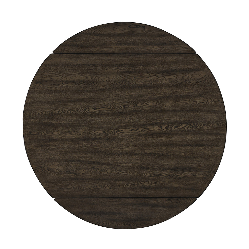 The Rex Mid-Century Modern 65" Round Dining Table with Self-Storing Leaves in Walnut Brown is a versatile and stylish addition to any dining space. Crafted from solid rubberwood, manufactured woods, and oak veneers, this table ensures exceptional stability and longevity. Its classic mid-century modern design features clean lines, rounded edges, and angled, tapered legs, embodying a timeless elegance. The multi-step walnut brown finish, hand-rubbed with a clear topcoat, enhances the natural beauty of the wood grain. This innovative dining table includes self-storing leaves that extend to provide roomy seating for six, making it perfect for both intimate meals and larger gatherings.