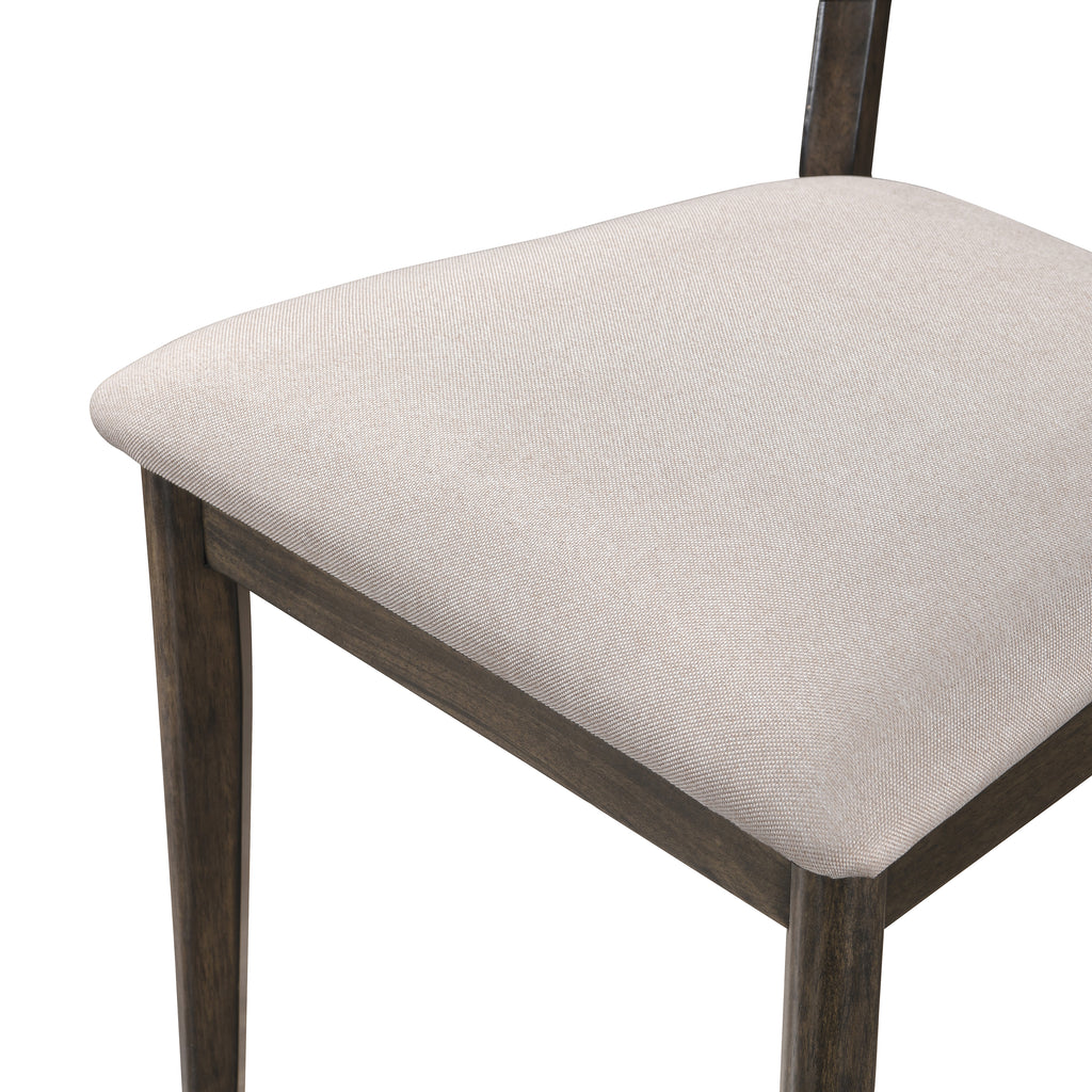 The Rex Mid-Century Modern Upholstered Dining Chairs in Walnut Brown offer both style and comfort for your dining space. This set includes two chairs, each crafted from solid rubberwood, manufactured woods, and oak veneers to ensure stability and longevity. The classic mid-century modern design features a minimalist aesthetic with clean lines, rounded edges, and angled, tapered legs, capturing timeless elegance. The multi-step walnut brown finish, hand-rubbed with a clear topcoat, enhances the natural beauty of the wood grain. These chairs provide comfortable seating with softly rounded backrests that cradle you as you sit on resilient foam seat cushions wrapped in 100% easy-care polyester fabric. Ideal for any dining area, these chairs combine quality construction with classic design and practical functionality.