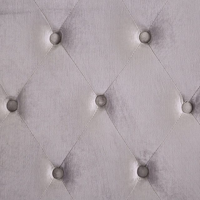 Charming and simple, this fabric bed suits all styles and will surely become a versatile piece to be cherished for years to come. The timeless, wingback headboard curves in ever so slightly and is button-tufted in a beautiful diamond pattern. Meanwhile, edges are lined with nailhead trim to add a touch of visual interest while maintaining the clean, classic look with its velvet-like upholstery.
