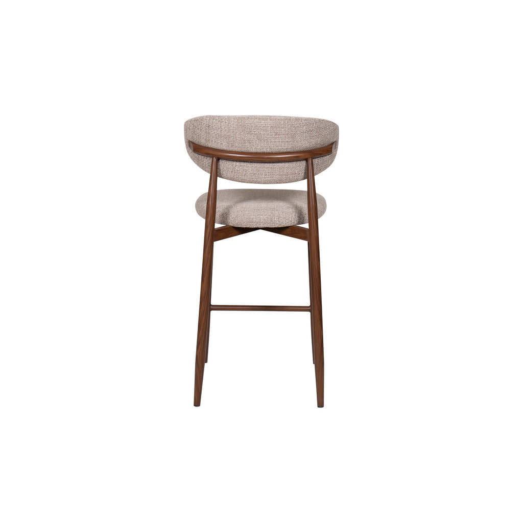 The Royce Counter Chair set offers a stylish and practical seating solution with a distinct mid-century modern flair. Each set includes two counter height chairs featuring a gracefully curved back and sleek, low-profile design that adds a refined touch to any dining or living space. The soft, woven brown and beige fabric is made from 100% polyester, offering a luxurious feel while being easy to maintain, perfect for everyday use. The sturdy metal seat frame, finished with an eco-friendly heat transfer process, replicates the look of walnut wood, combining a sophisticated appearance with long-lasting durability. With its blend of mid-century modern design, comfort, and resilience, the Royce Counter Chair is an excellent choice for those seeking a timeless and functional seating option.