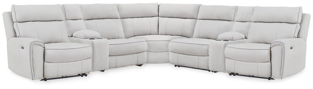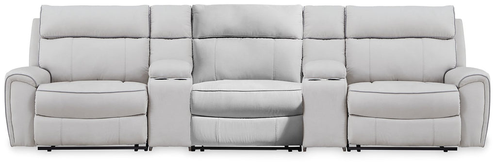 - Includes 5 modular pieces: left-arm facing power recliner, power armless recliner, 2 consoles with storage and right-arm facing power recliner